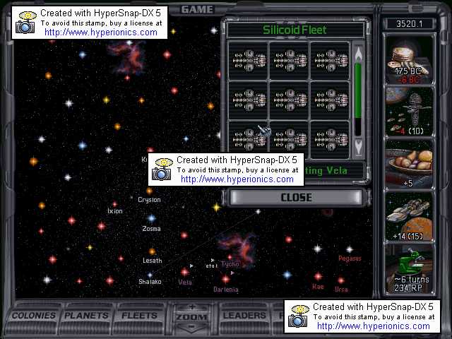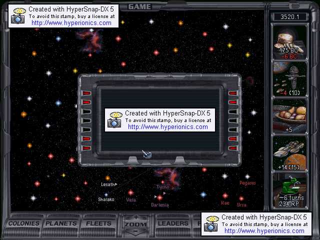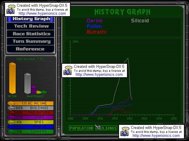 Taxation:5 billion credits per turn, needs 5.
