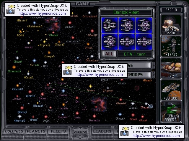 Empire reports: We now have 11 battleships. A battleship finishes construction every 3 turns at Darlenia 3. We have 1 command point available, with 46 used.