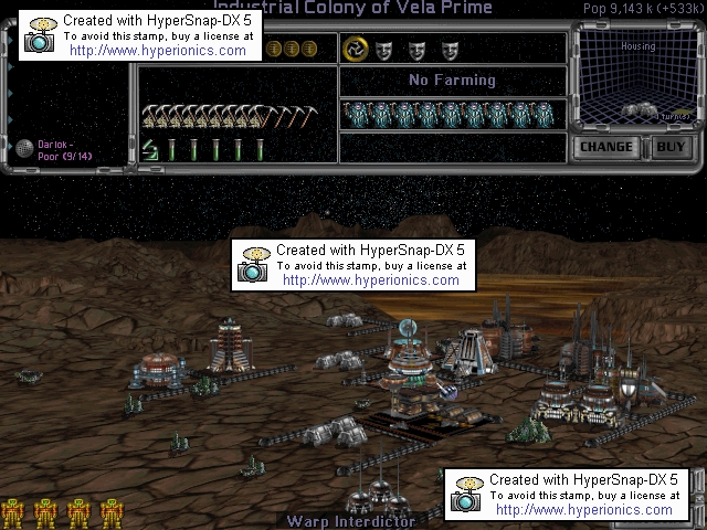 Turn 279:Yet another warship finished construction in the shipyards above Darlenia 3, and as promised, all systems excepting the outpost system are protected by warp interdiction fields.