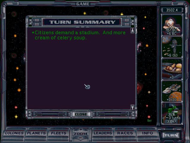I was reminded again, for only the second time in all the years I've played MOO II, of a silly little joke in the game, sort of an Easter Egg:
